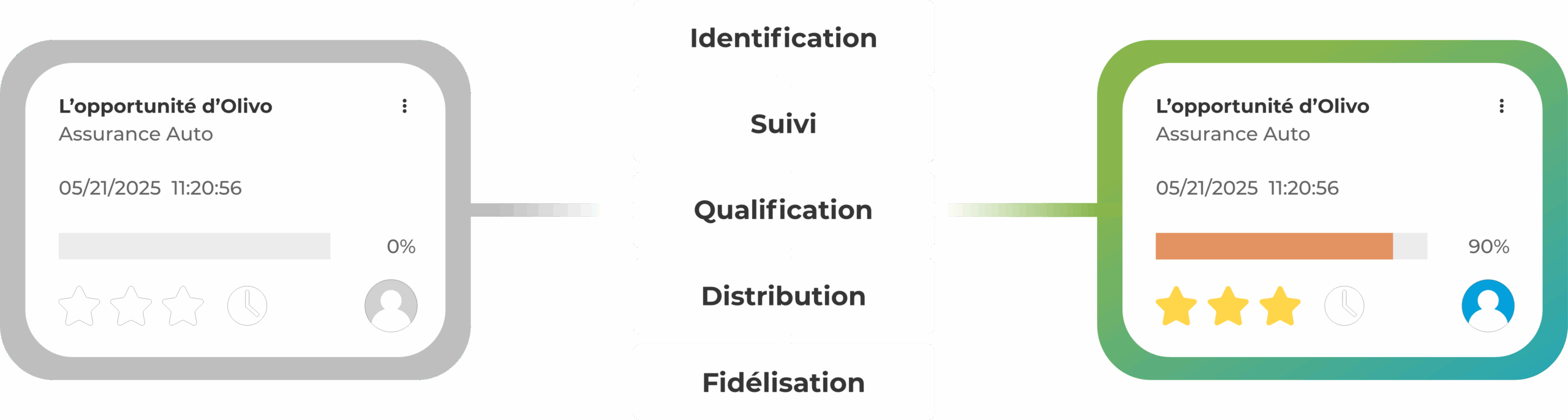 Chaque cabinet fonctionne à sa façon. OlivoEngage s’adapte à votre réalité avec des étapes de ventes modulables, des pipelines flexibles et des tableaux de bord selon les équipes. Ajoutez ou retirez des étapes selon vos besoins et suivez la progression telle que votre entreprise fonctionne réellement.